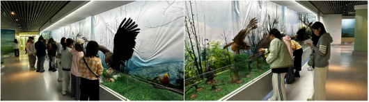 活动中,专业讲解员以生动详实的讲述,带领学生系统梳理秦巴山地的地理特征与核心生态价值,让大家对这片珍稀野生动物的“天然栖息地”建立起深刻认知。随后,学生分组走进“秦岭四宝”(大熊猫、金丝猴、羚牛、朱鹮)专题展区,透过栩栩如生的标本、结合细致的物种讲解,深入了解“秦岭四宝”的生存习性、分布范围及保护进展,直观感受珍稀动物与自然环境的共生关联,深切体会保护工作的重要意义。在互动讨论环节,师生围绕秦巴山地自然保护区建设价值展开热烈交流,从不同维度探讨野生动物保护路径,明晰新时代青年在生态文明建设中的责任担当。
