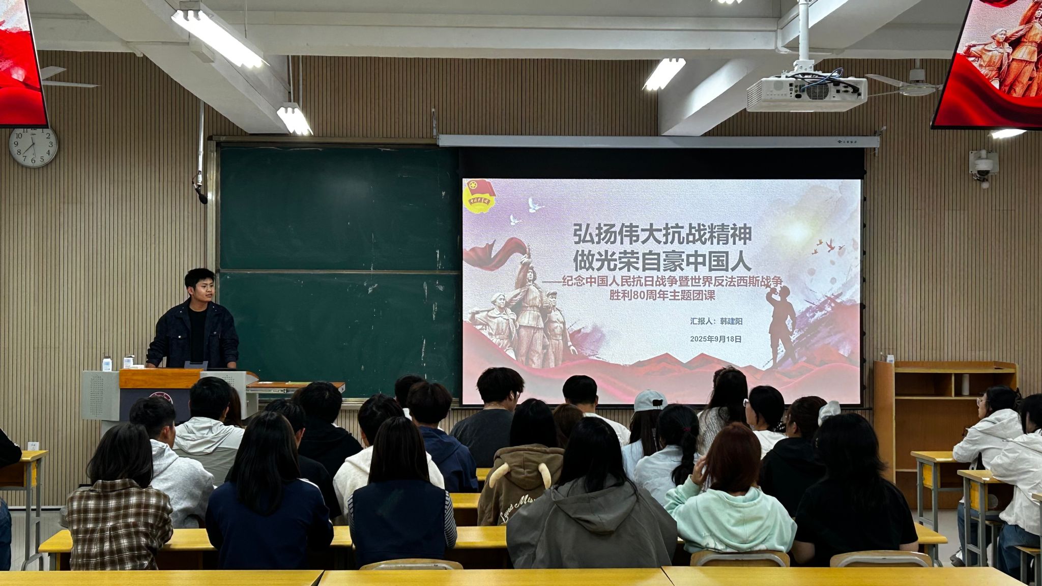 为了深入学习习近平总书记在纪念中国人民抗日战争暨世界反法西斯战争胜利80周年大会上的重要讲话精神,深化学生对伟大抗战精神的理解与认同,充分发挥思政课立德树人主渠道作用,bwin必赢(中国)在线登录入口团总支于9月18日在学院多媒体教室及学生宿舍等场所,开展“弘扬伟大抗战精神做光荣自豪中国人——纪念中国人民抗日战争暨世界反法西斯战争胜利80周年”思政大课学习活动。