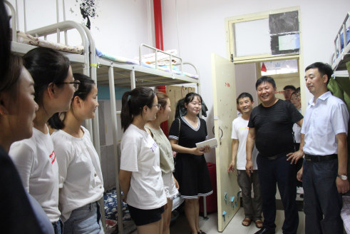 9月2日下午,我院党总支书记王辉老师,院长杨哲老师,学工办主任刘泽桢老师,辅导员魏麟老师,薛涛老师以及随行的学生会成员对18级新生宿舍进行了看望了2018级新生。 在新生宿舍里,新生们以朝气蓬勃的面貌和热烈的掌声欢迎我院领导和老师的到来,师生之间就生活中的问题进行交流。