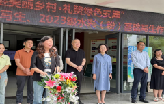 学生代表2023级美术学1班刘欢同学代表此次写生的全体同学发言,汇报了在写生期间如何观察、如何用笔用墨、如何构图。