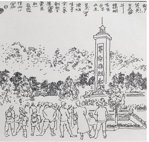我院党总支书记王辉为全体团员提出希望,他强调指出,共青团是中国共产党领导的先进青年的群团组织,是广大青年在实践中学习中国特色社会主义和共产主义的学校,是中国共产党的助手和后备军。这次活动是我院党建带团建的一次重要的实践活动,希望广大青年团员要严格要求自己,强化“四个意识”,坚定“四个自信”,做到“两个维护”,争做时代先锋,为bwin必赢(中国)在线登录入口的发展贡献自己的力量。活动中,王辉老师以速写的形式记录了本次祭奠活动的场景。