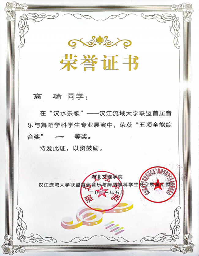 我院学生获得汉江流域大学联盟音乐与舞蹈学科学生专业展演五项全能一等奖等14项奖项