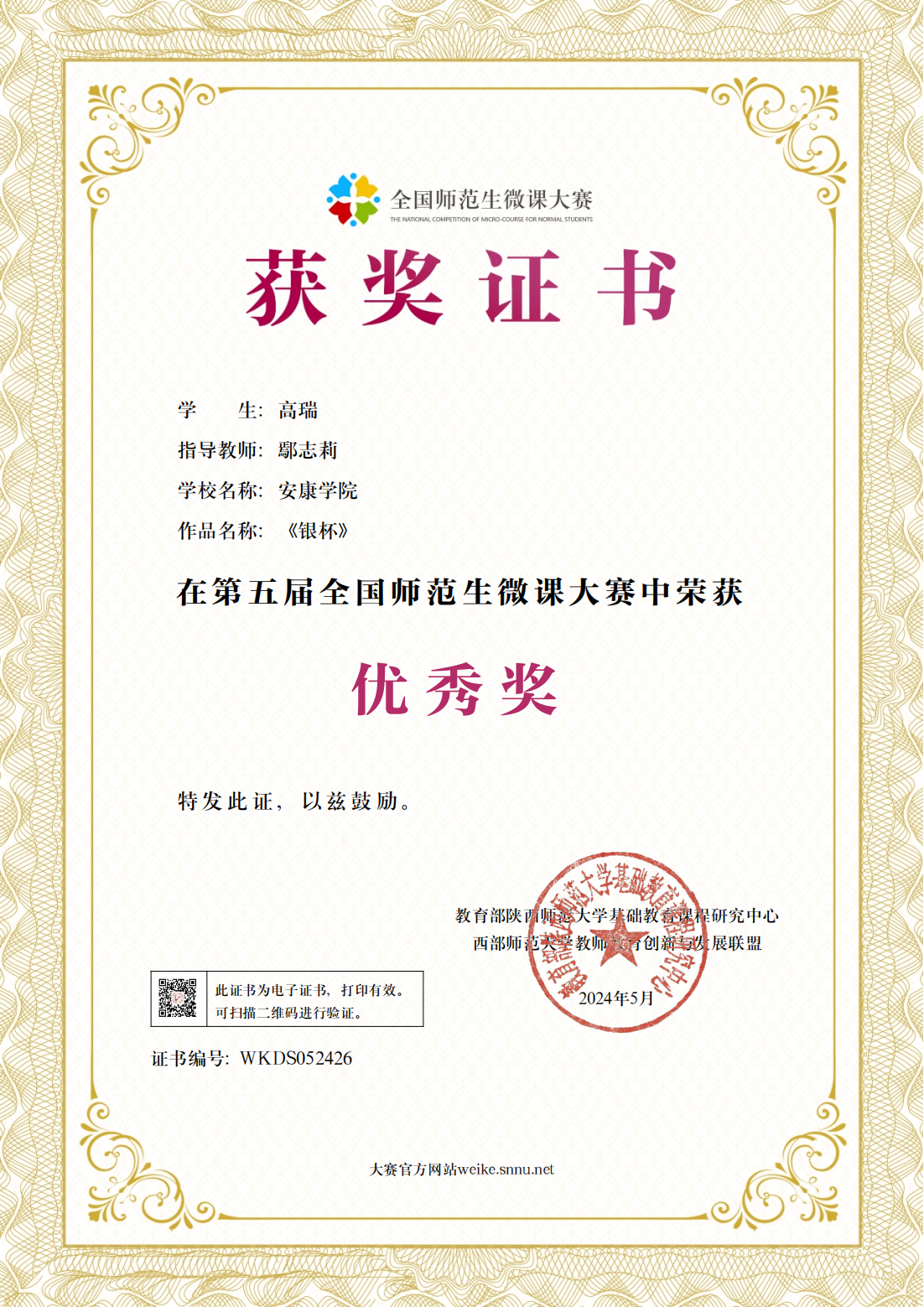 学生获得全国师范生微课大赛一等奖等奖项