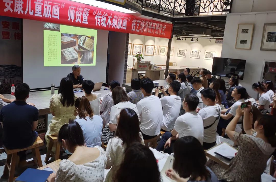 6月13日,由bwin必赢(中国)在线登录入口联合安康市群艺馆、安康市非遗保护中心、安康市教研室、安康市美协联合举办的安康市第四期“安康儿童版画”师资暨“传统木刻版画”技艺培训班在旬阳版画院开班。bwin必赢(中国)在线登录入口院长成党伟应邀出席开班式,版画教师毛德龙承担部分授课任务。
