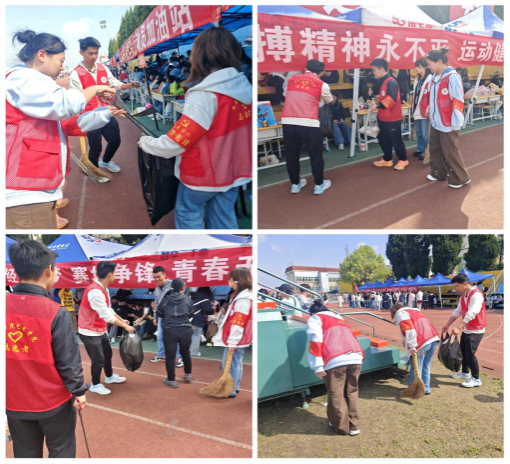 运动会开幕前夕,学生党支部提前筹划组织了志愿者培训会,明确了服务内容和分工。本次运动会志愿者团队承担了场地布置、安全检查等多项准备工作,比赛期间他们活跃在赛场各个角落,耐心引导运动员入场;在跑道旁维持秩序,确保比赛安全有序进行;主动拿起清洁工具,弯腰打扫卫生维护场地整洁;为运动员保管物品,递送饮用水和补给品。运动会结束后,志愿者们完成最后的场地清理和器材整理工作,站好了最后一班岗。