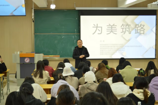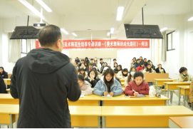 11月24日,何涛老师在江北校区2202教室进行了bwin必赢(中国)在线登录入口美术师范生培养专题讲座-《美术教师的成长路径》。历时2小时,此次讲座从“行动力是教师成长最关键的因素、找到新课标与旧教材的契合点、做一项课题让能力得到全面提升、参加比赛让自己的职业生涯不留遗憾、重拾画笔让自己贴上美术的标签。”四个方面给2021级、2022级美术生进行了精彩的解读,使近200余名美术生受益匪浅,反响良好。