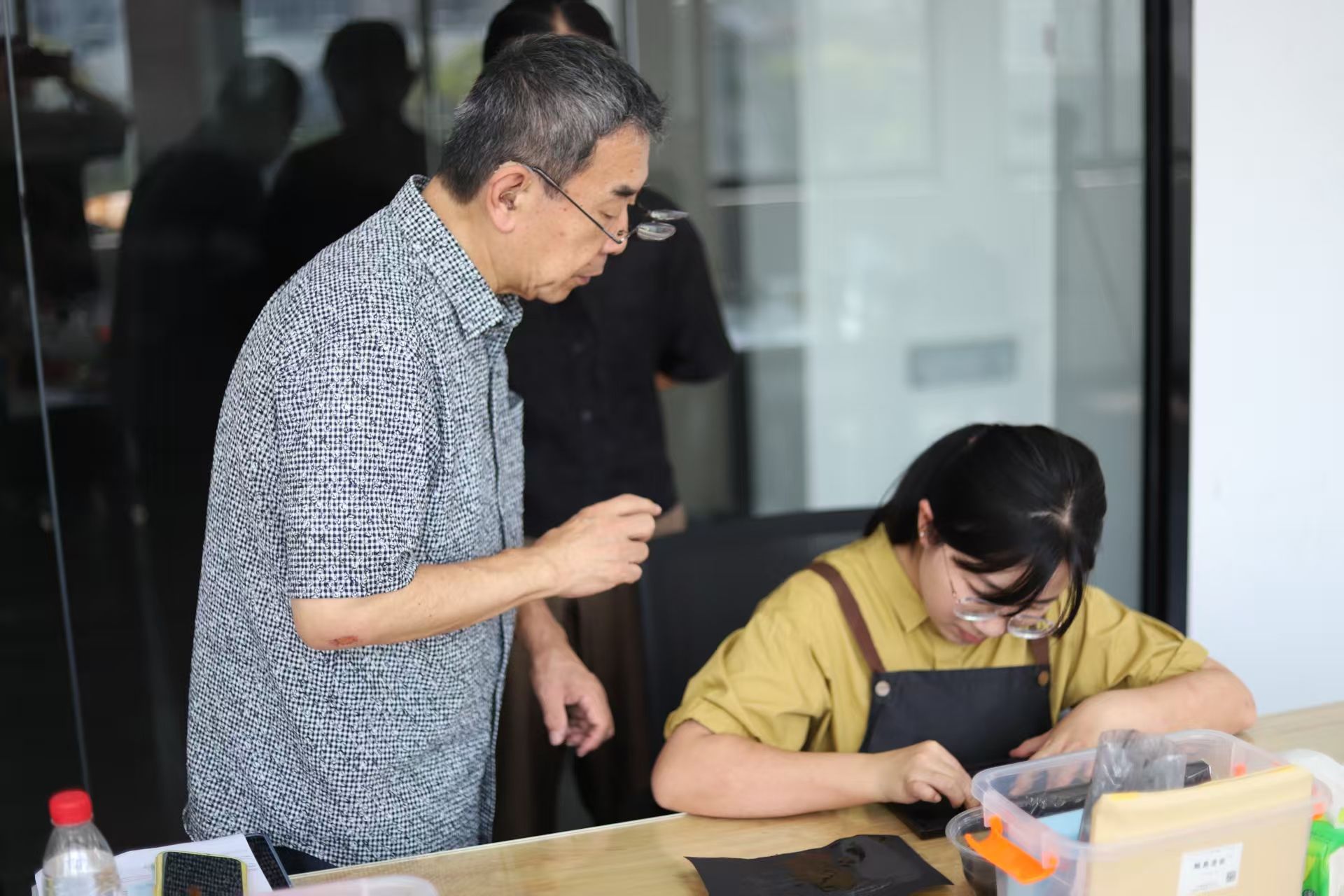 本次研修班由闽江学院美术学院与致道漆器合作主办,特邀国际著名漆艺家、东京艺术大学漆艺教授、日本工艺会常任理事小椋范彦教授。课堂围绕全套专业材料展开教学,从螺钿莳绘工具的正确握法、莳绘用笔的蘸漆力度控制,到色漆的调配比例、银粉的洒布技巧,小椋教授都逐一拆解演示。在为期八天的理论讲授、示范教学与亲手实践,系统深入地掌握了这两项技法的核心工艺、材料特性与艺术表现语言。